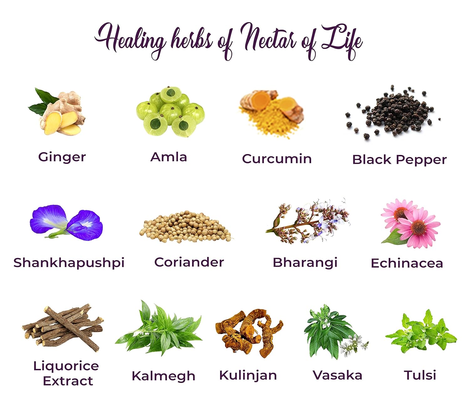 - A BLEND OF 13 EXOTIC HERBS: Ginger, Black Pepper, Amla, Shankpushpi, Coriander, Curcumin , Vasaka , Kalmegh, Bharangi, Kulinjan, and Liquorice Extract, Tulsi and Echinacea.