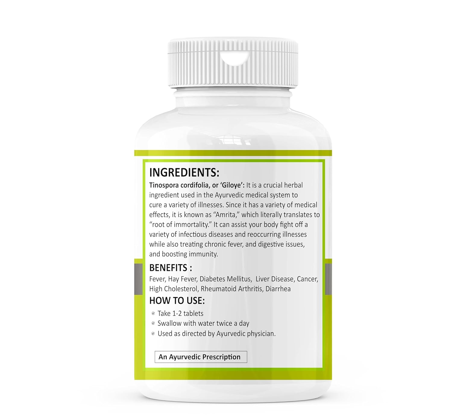 - Formulated with giloy extract, known in Ayurveda for its supportive properties.